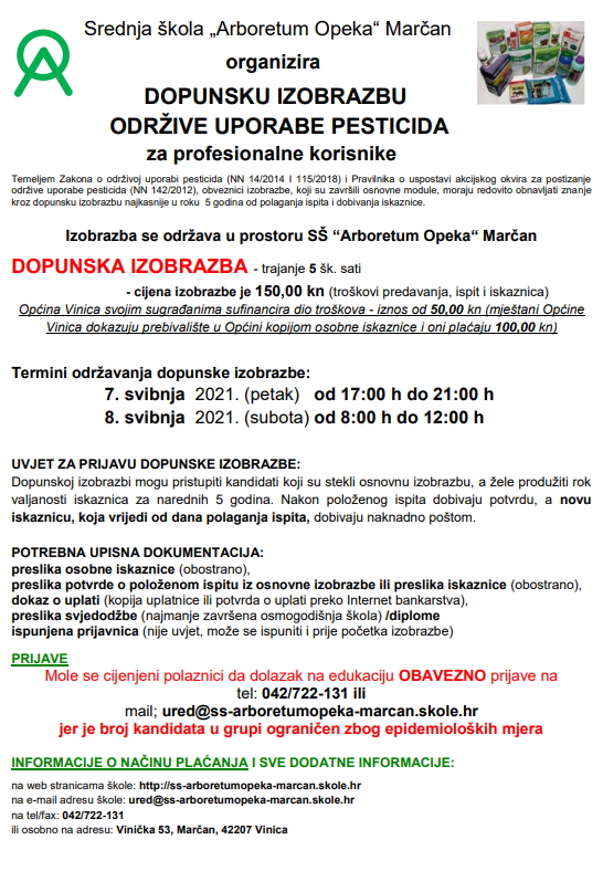 DOPUNSKA IZOBRAZBA ODRŽIVE UPORABE PESTICIDA